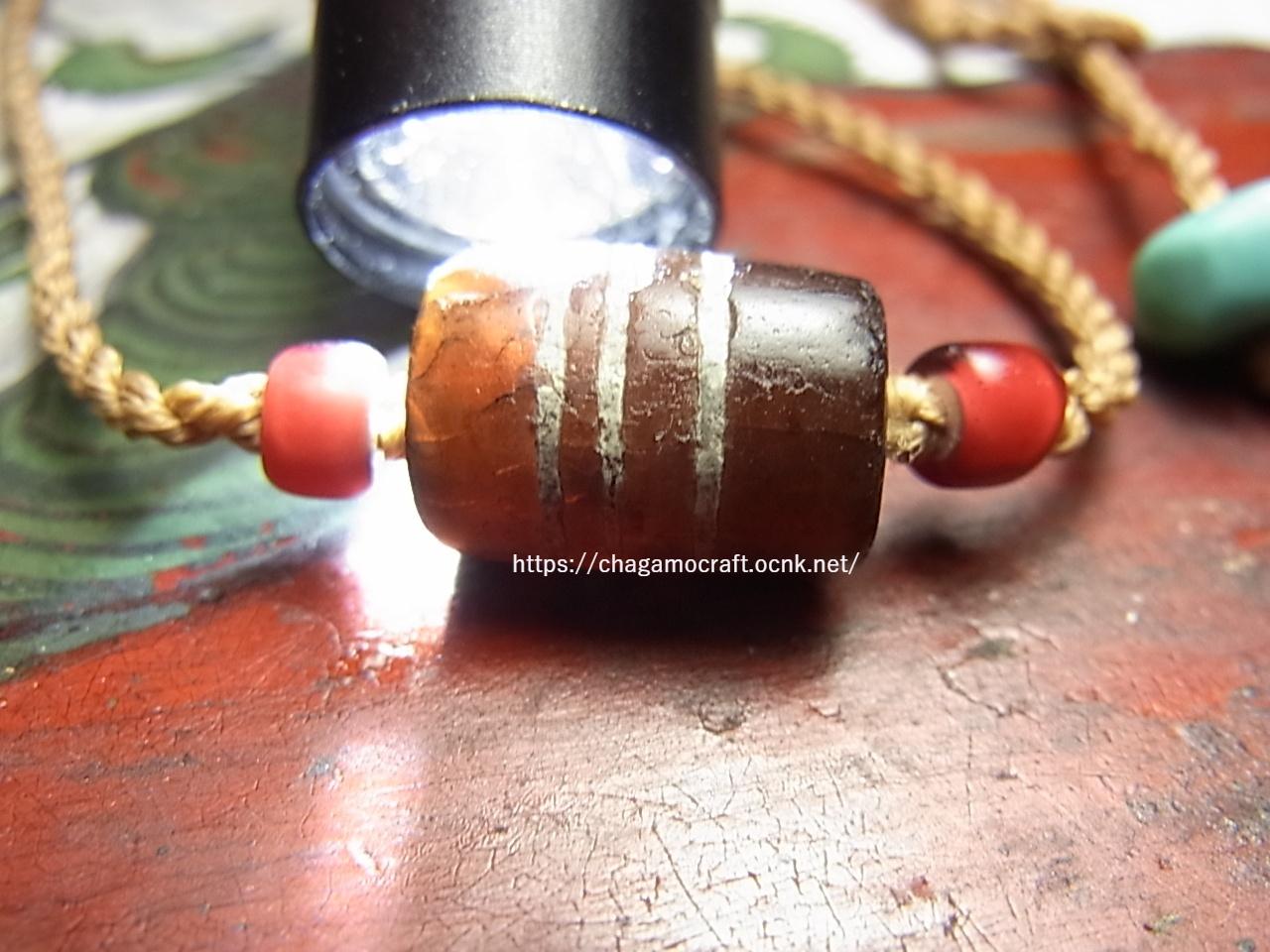 チベットのジービーズの起源であり、腐蝕加工の技術(エッチング)を用いた瑪瑙(カーネリアン)ビーズです。