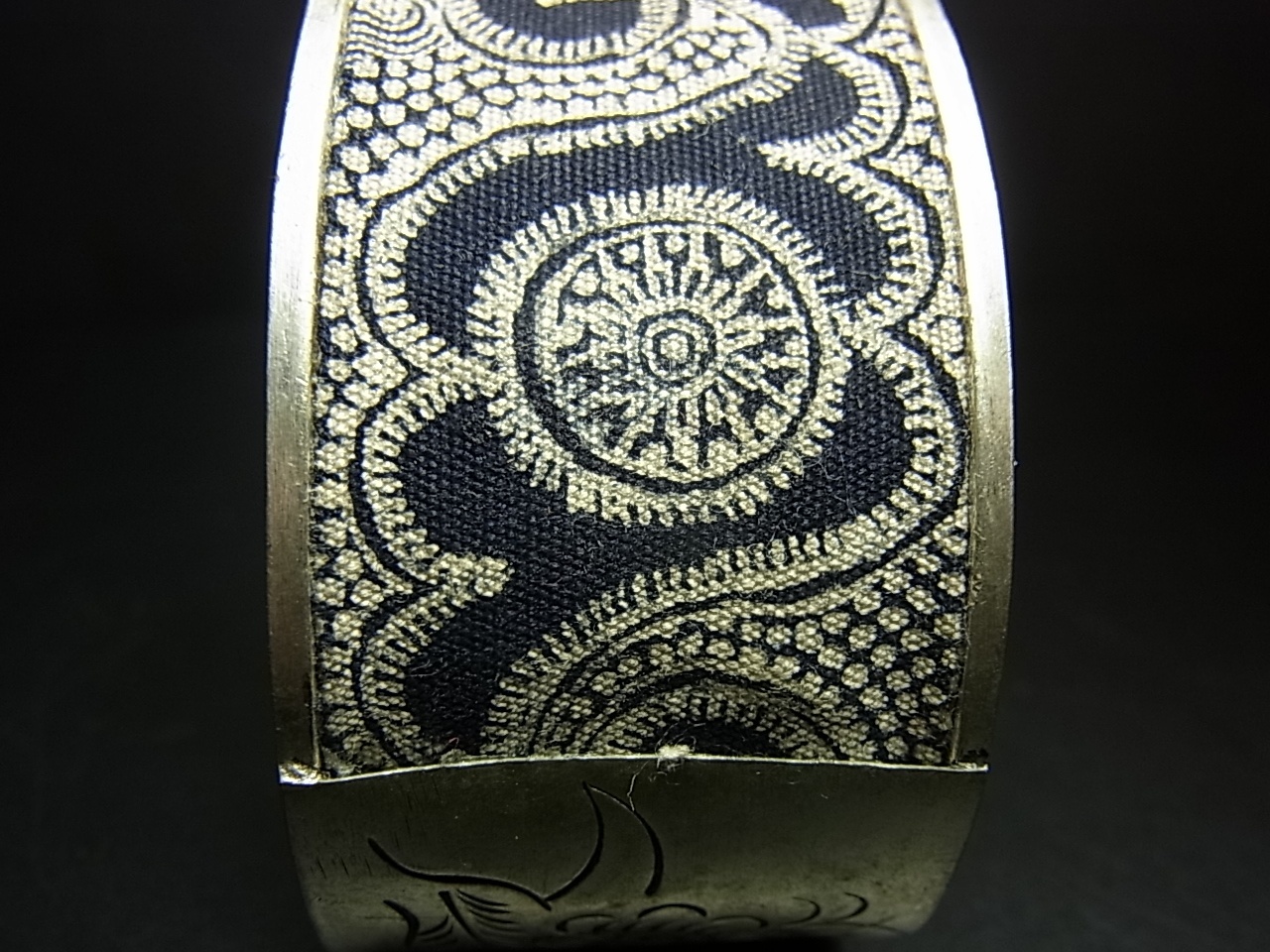 貴州省ミャオ族(苗族)の藍印花布古裂を用いたシルバー(苗銀製)バングルになります。