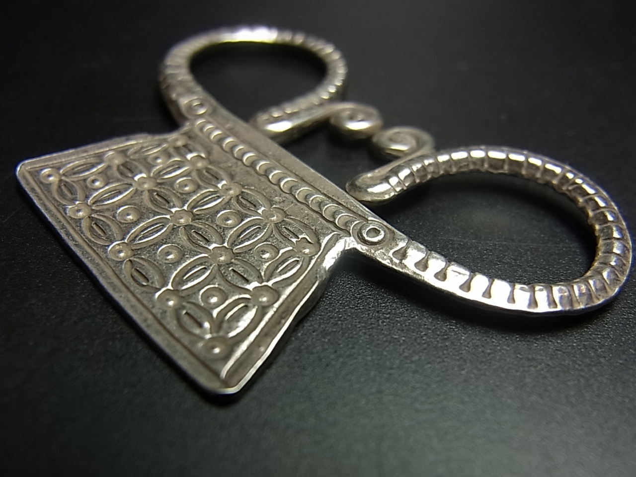 白メオ族(モン族/白苗族/ミャオ)錠前型魔除け背守り・Old silver amulet from Meo(Hmong)(モンシルバー)