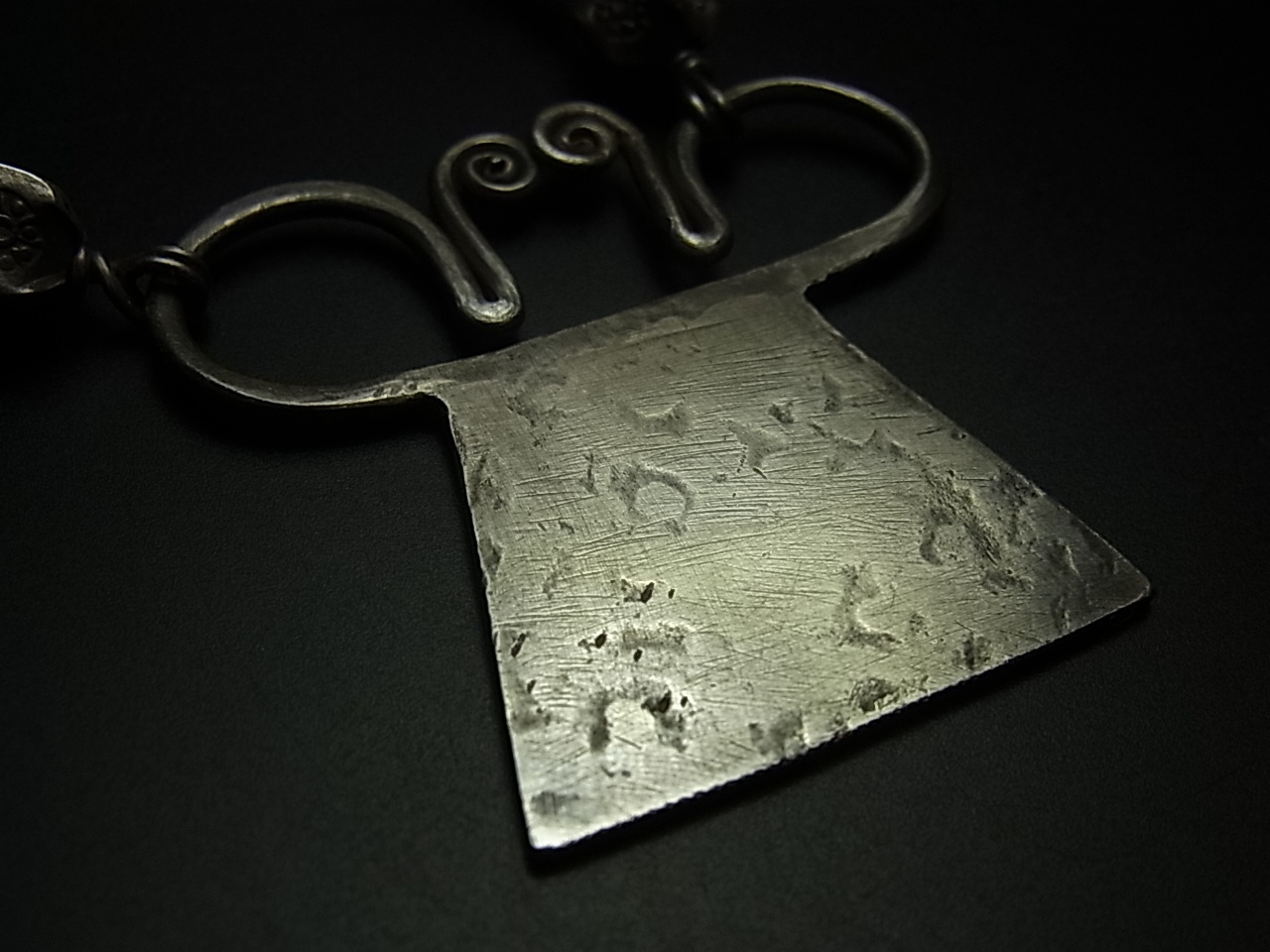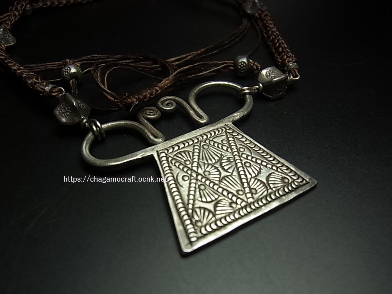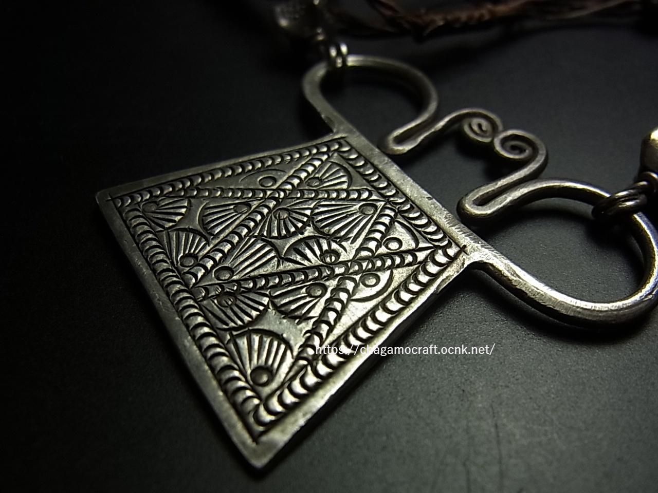 白メオ族(モン族/白苗族/ミャオ)錠前型魔除け背守りとカレンシルバーの首飾り