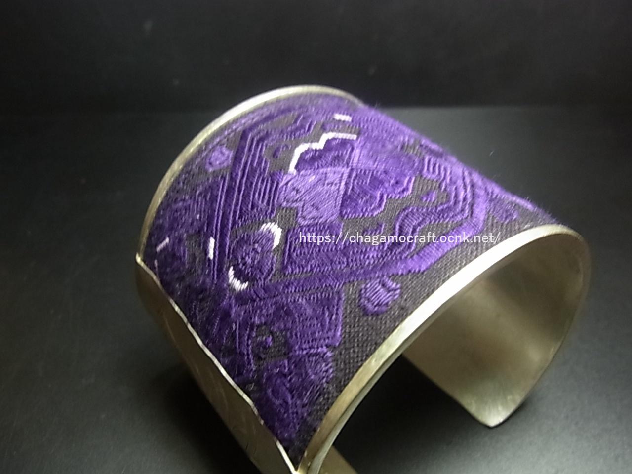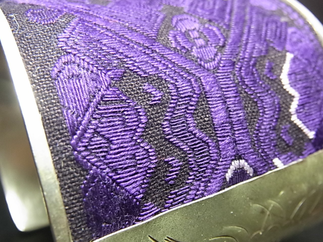 貴州省ミャオ族(苗族)の刺繍古裂を用いたシルバー(苗銀製)バングルになります。