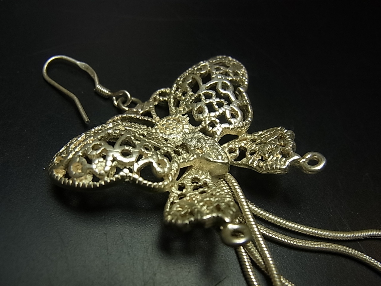 貴州省ミャオ族(苗族)のシルバーピアス(苗銀)になります。