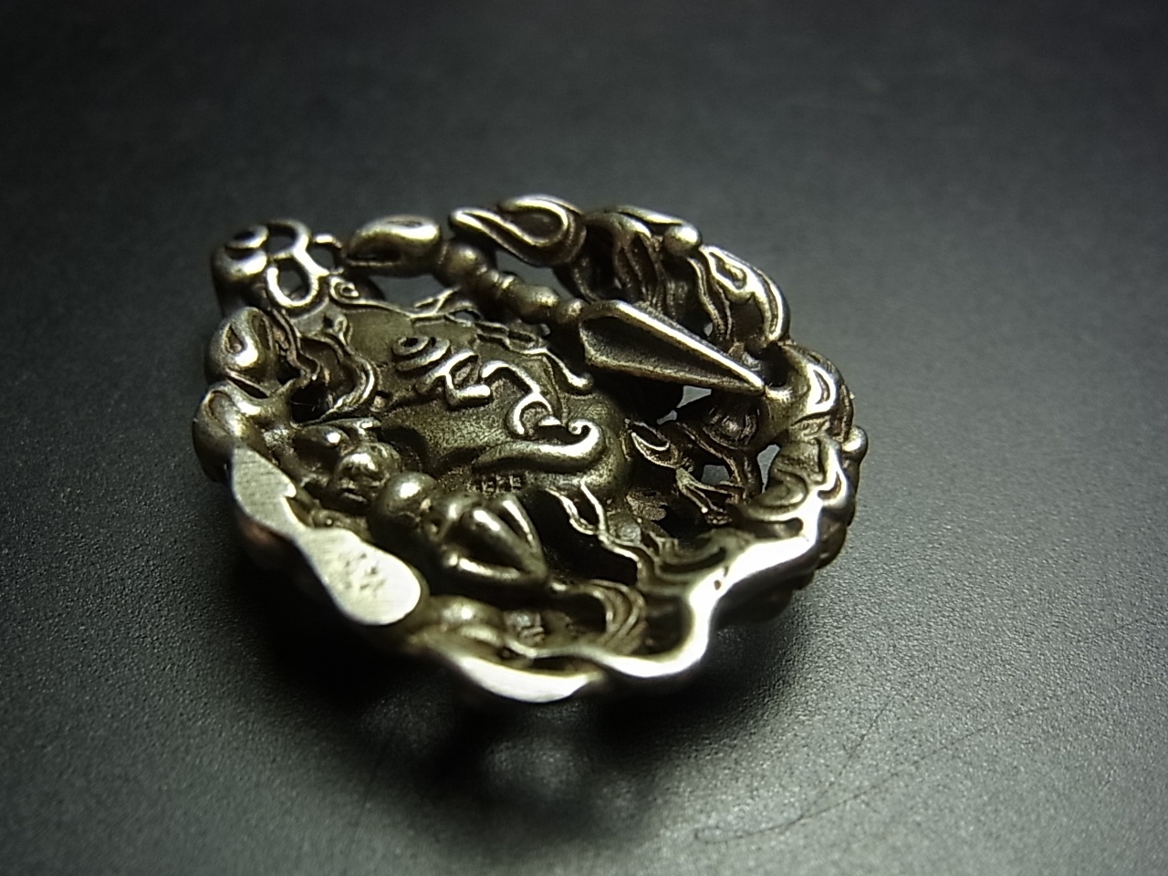 蠍の裏面には独鈷杵と金剛杵、またチベット文字でマントラ(真言)のフム(締めの文字)が刻まれています。
