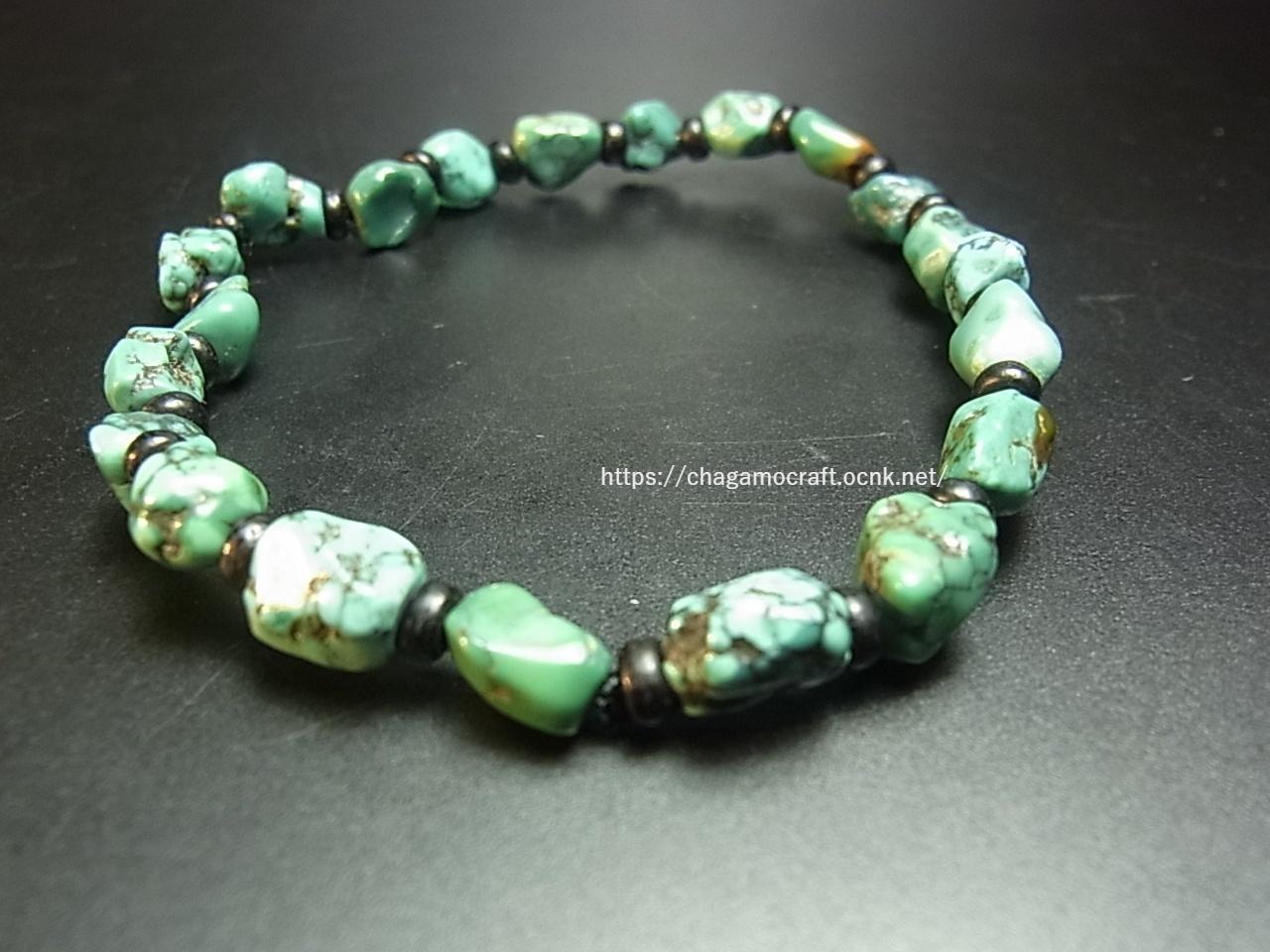 チベタン・アンティークターコイズ(yu)のブレスレット (Old tibetan turquoise)約8ℊ