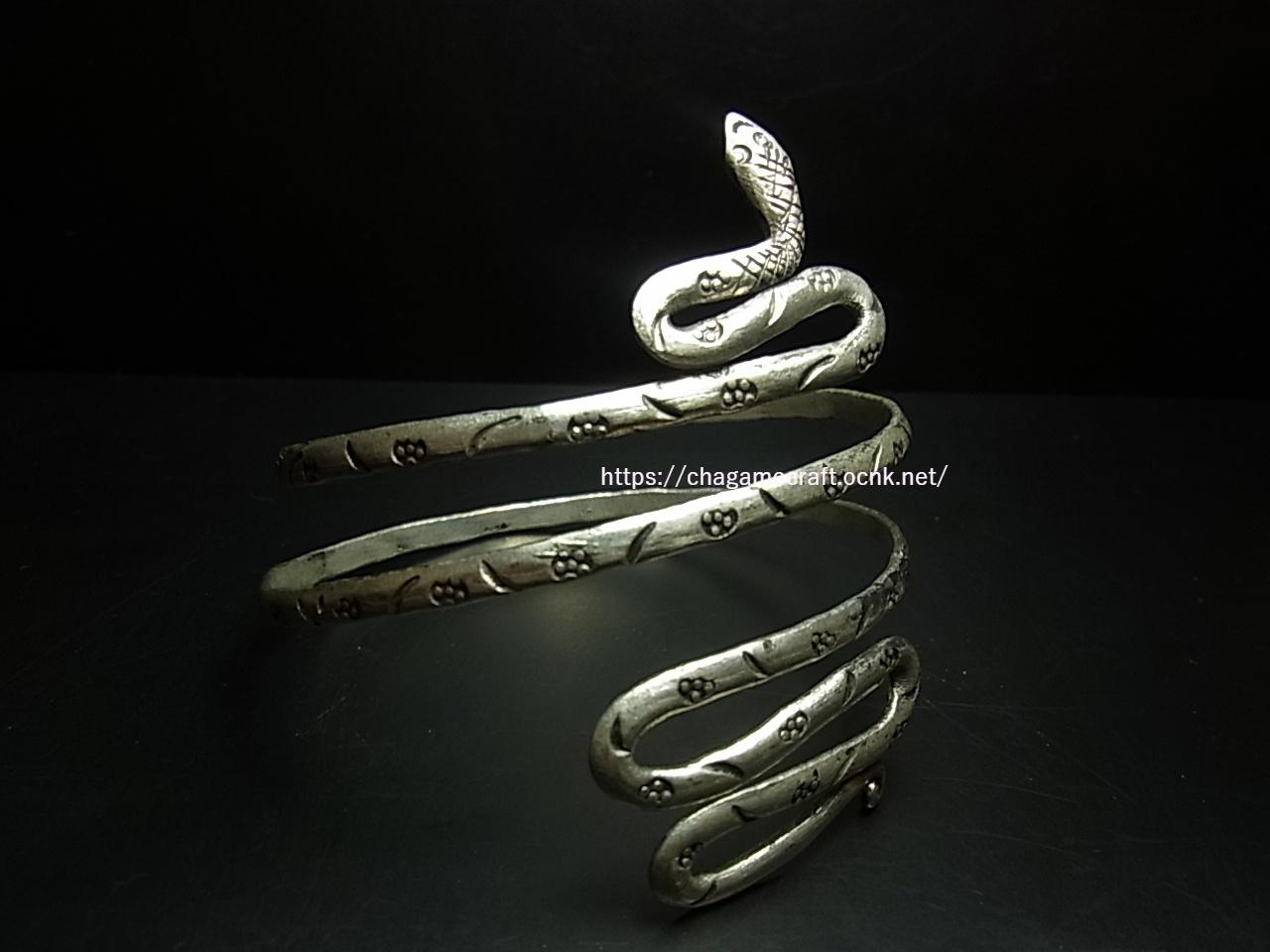ミャオ族(苗族)のシルバーブレスレット(苗銀製)蛇・トラディショナル