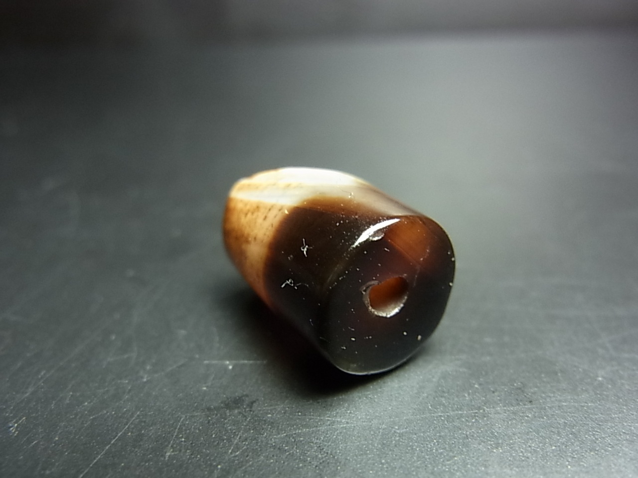 中華圏では黒白珠、ヒマラヤチベット圏ではヴァイシャジャグル(薬師珠)などと呼ばれる、線珠の一つです。